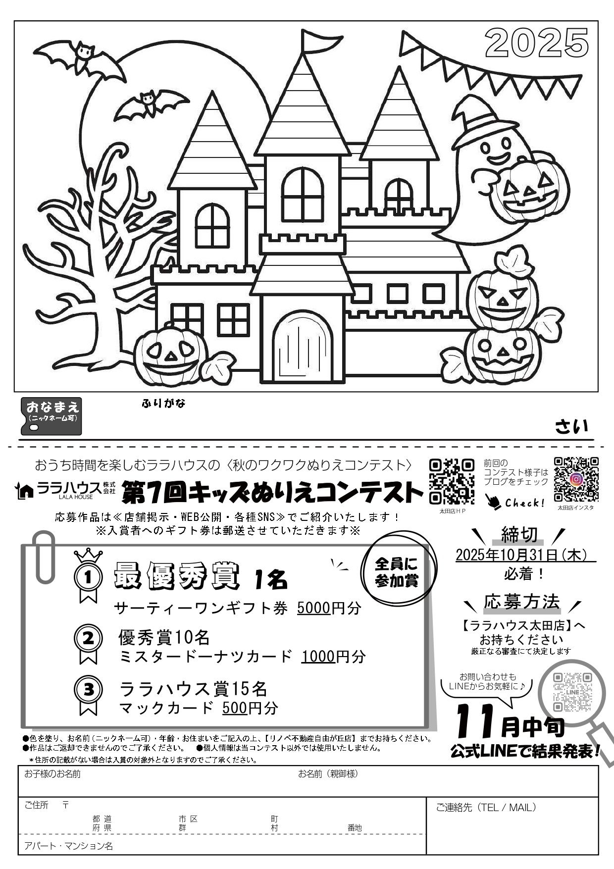 ♩.•*¨*•.¸¸第7回キッズぬりえコンテスト♩.•*¨*•.¸¸【更新】 | 太田市の不動産・新築一戸建て・注文住宅はララハウス太田店