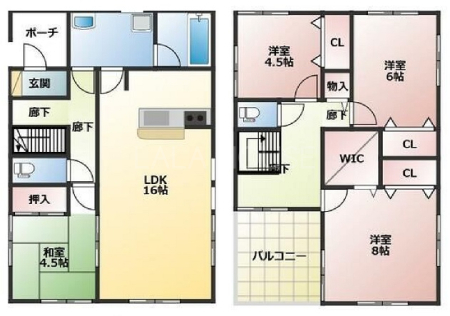 築年月 | 2025年11月築 | 間取り | 4LDK (LDK16/和室4.5/洋室7.5/洋室7.5/洋室4.5) | ||