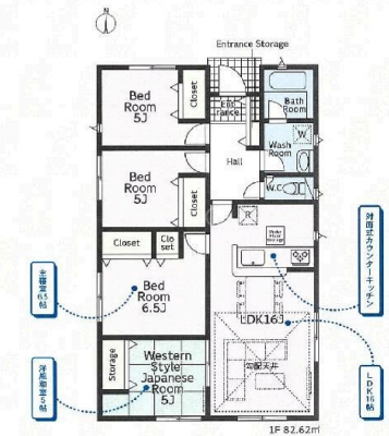 | 築年月 | 2025年11月築 | 間取り | 4LDK (LDK16/和室4.5/洋室7.5/洋室7.5/洋室4.5) | ||
