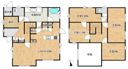 築年月 | 2002年1月築 | 間取り | 4LDK (LDK20.1/和室8.5/洋室5.1/洋室8.5/洋室8.5) | ||